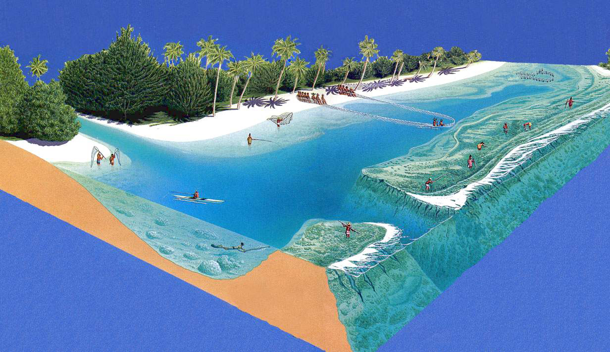 Schéma des différents types de pêches lagonaires résilientes : leur impact positif sur l’environnement et les stocks sera analysé et actualisé aux sein des éco-sites MOANA NUI.
